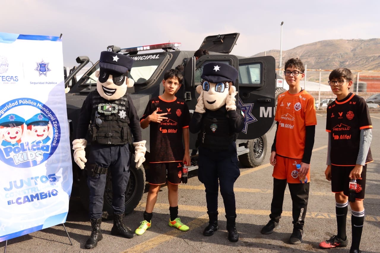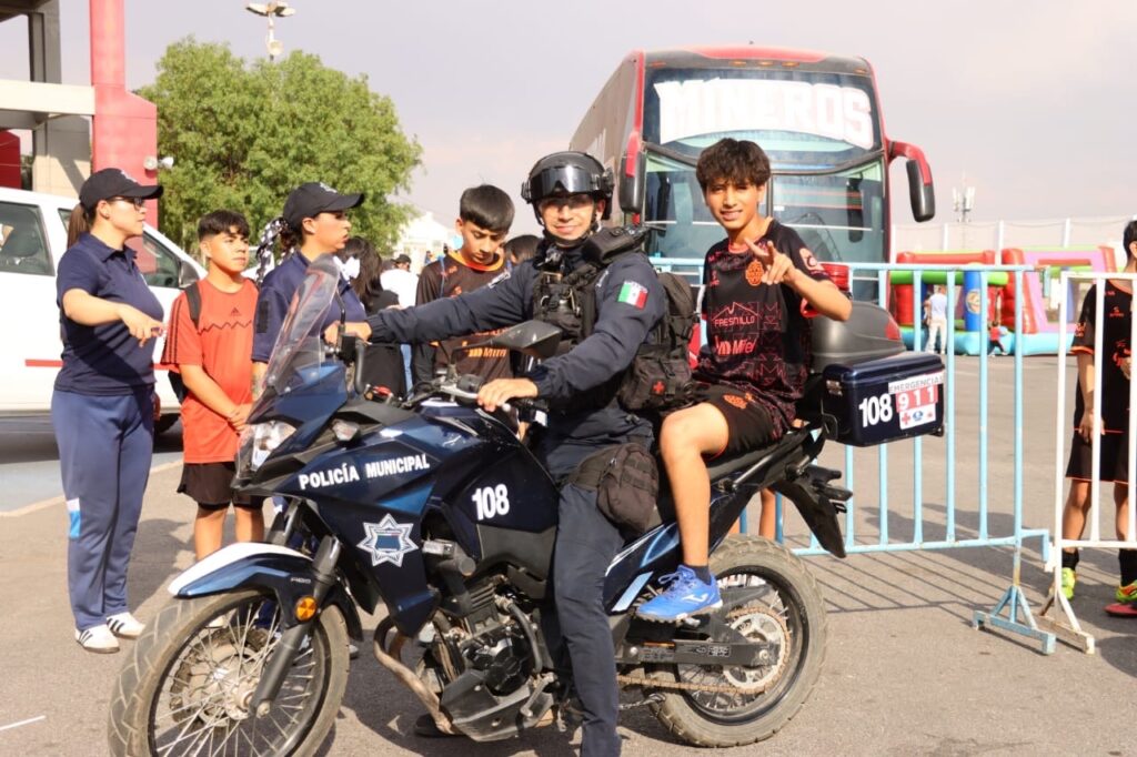 Zacatecas, Zac.- La Secretaría de Seguridad Pública Municipal de la capital participó en el “Mineritos”, evento anual que organiza el Club de Fútbol Mineros de Zacatecas, con motivo del Día del Niño y la Niña.