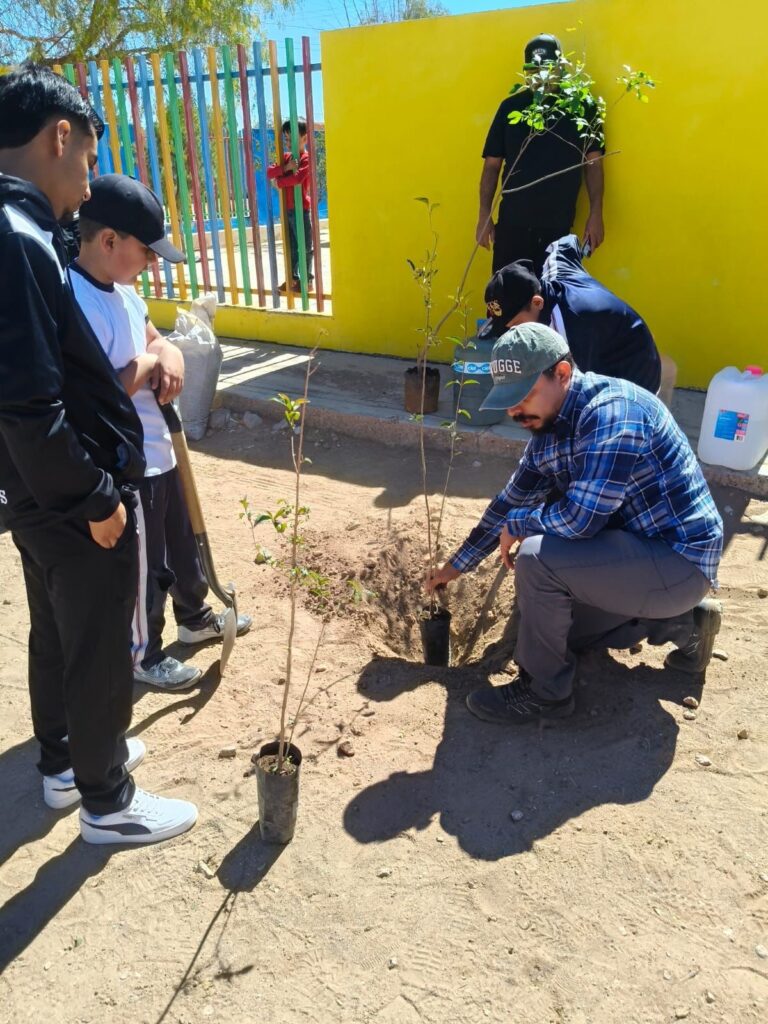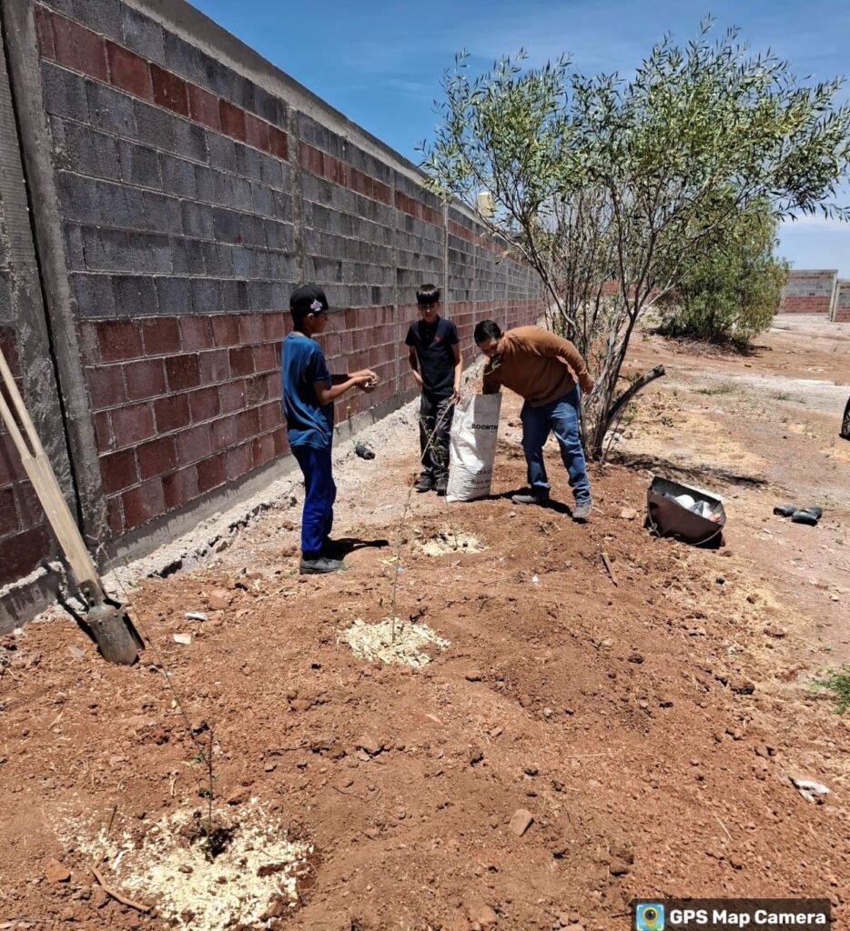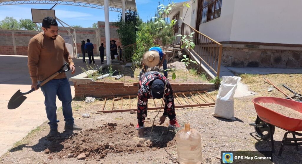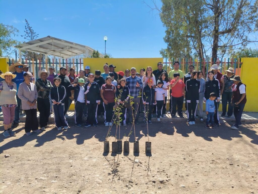En la comunidad de Boquillas, estudiantes de la telesecundaria Rafael Ramírez Castañeda participaron activamente en la reforestación de su plantel. Cada alumno plantó y adoptó un árbol, al que además se le aplicó acolchonado orgánico producido en el vivero municipal, con el objetivo de mejorar su crecimiento y supervivencia.