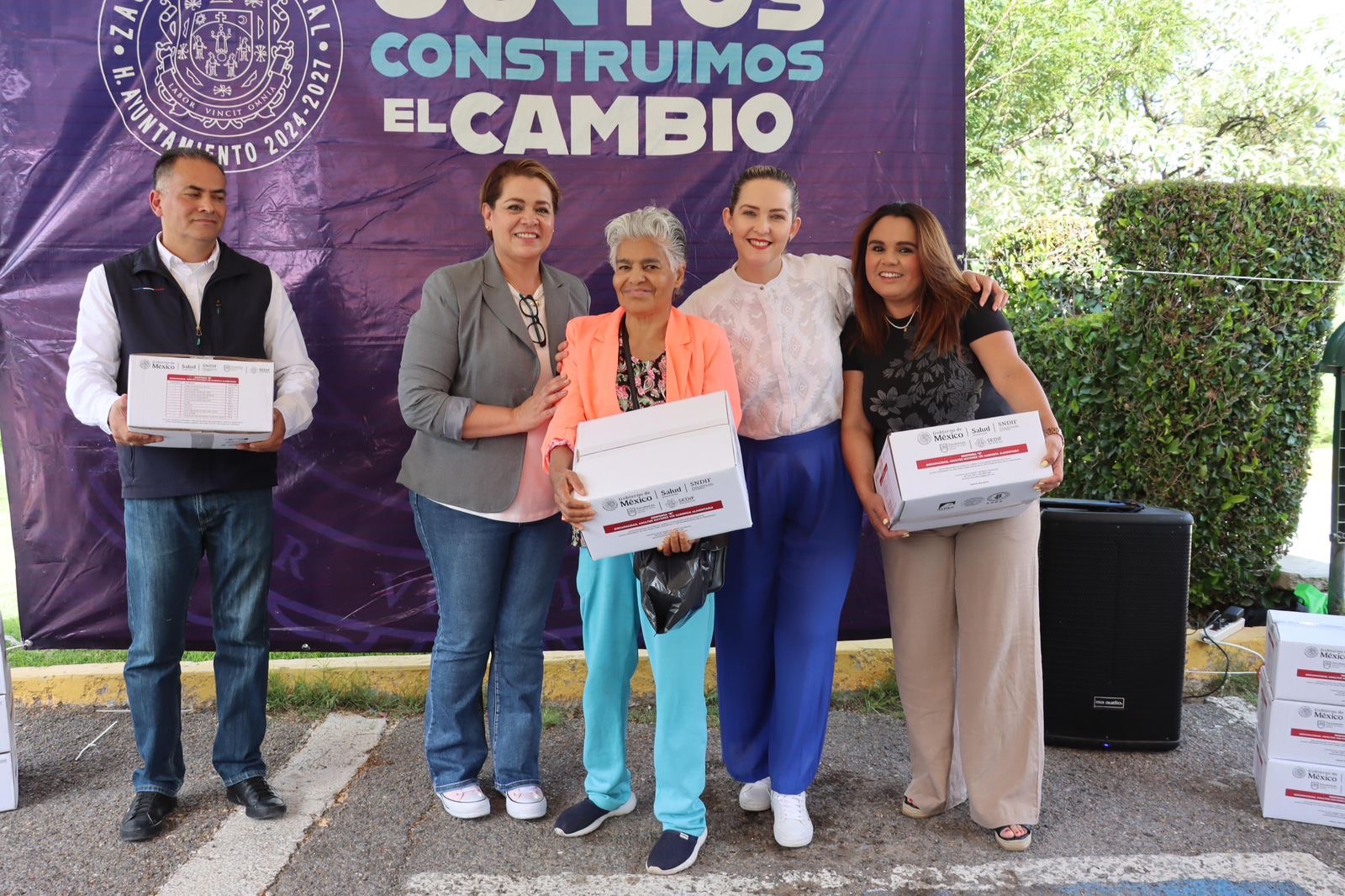 Durante su mensaje, Karla Estrada reafirmó el compromiso que existe por parte de su esposo, el Alcalde Miguel Varela y ella, para que estos apoyos lleguen a familias que viven en condiciones de vulnerabilidad.