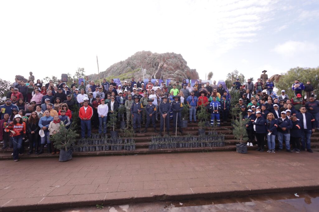 Durante la actividad, Issac Alejandro Rivera Ruvalcaba, director general de Medio Ambiente, informó que los ejemplares plantados corresponden a especies nativas como pino piñonero, yuca y mezquite, que se adaptan naturalmente a las condiciones del cerro.